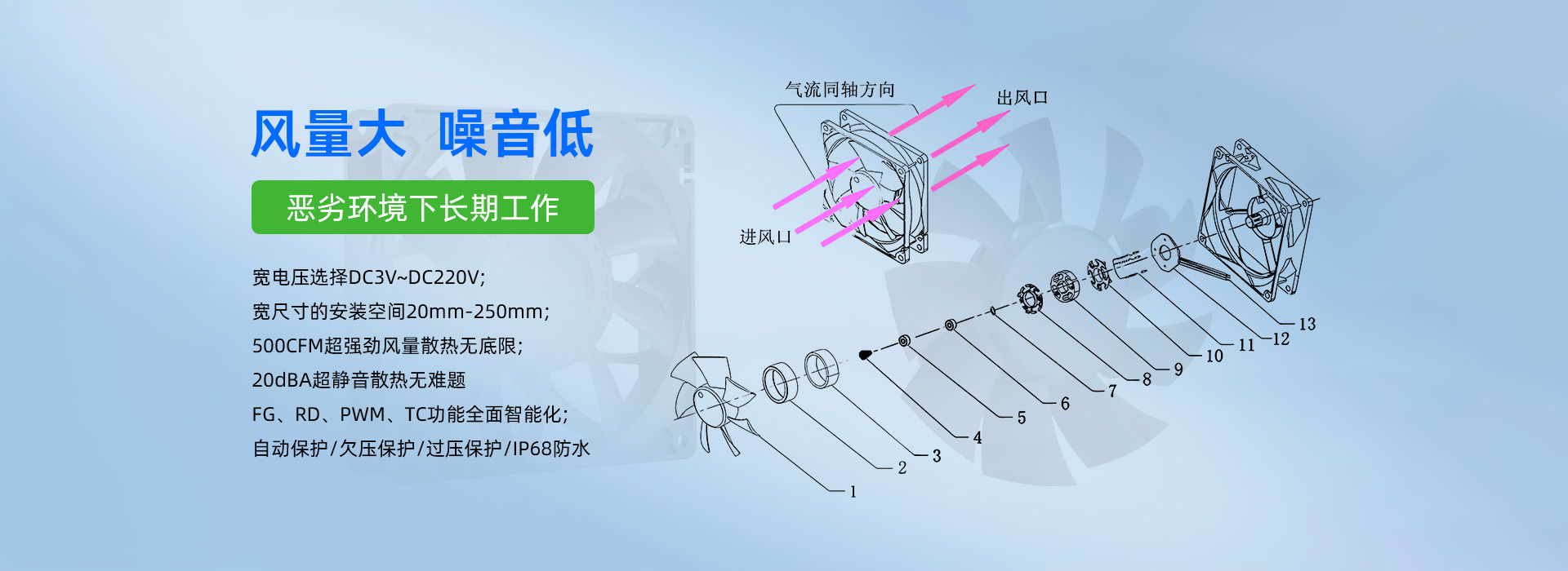 深圳市毅榮川電子科技有限公司于2005年創(chuàng)立于中國深圳、是一家專業(yè)研發(fā)、生產(chǎn)、銷售散熱風(fēng)扇的高科技企業(yè)。所生產(chǎn)的直流風(fēng)扇、交流風(fēng)扇、鼓風(fēng)機(jī)、防水/防塵風(fēng)扇、EC變頻風(fēng)扇、直流散熱風(fēng)扇、汽車散熱風(fēng)扇、靜音散熱風(fēng)扇、支架散熱風(fēng)扇、渦輪增壓風(fēng)扇、直流散熱風(fēng)機(jī)、直流離心風(fēng)機(jī)、直流鼓風(fēng)機(jī)、鼓風(fēng)機(jī)廠家、新能源風(fēng)扇、無刷馬達(dá)等,已廣泛應(yīng)用于:通訊設(shè)備、UPS電源、醫(yī)療器械、電焊機(jī)、工控設(shè)備、家用電器、空氣凈化行業(yè)、汽車行業(yè)、投影儀、美容儀器、運(yùn)動器材等行業(yè)領(lǐng)域。
